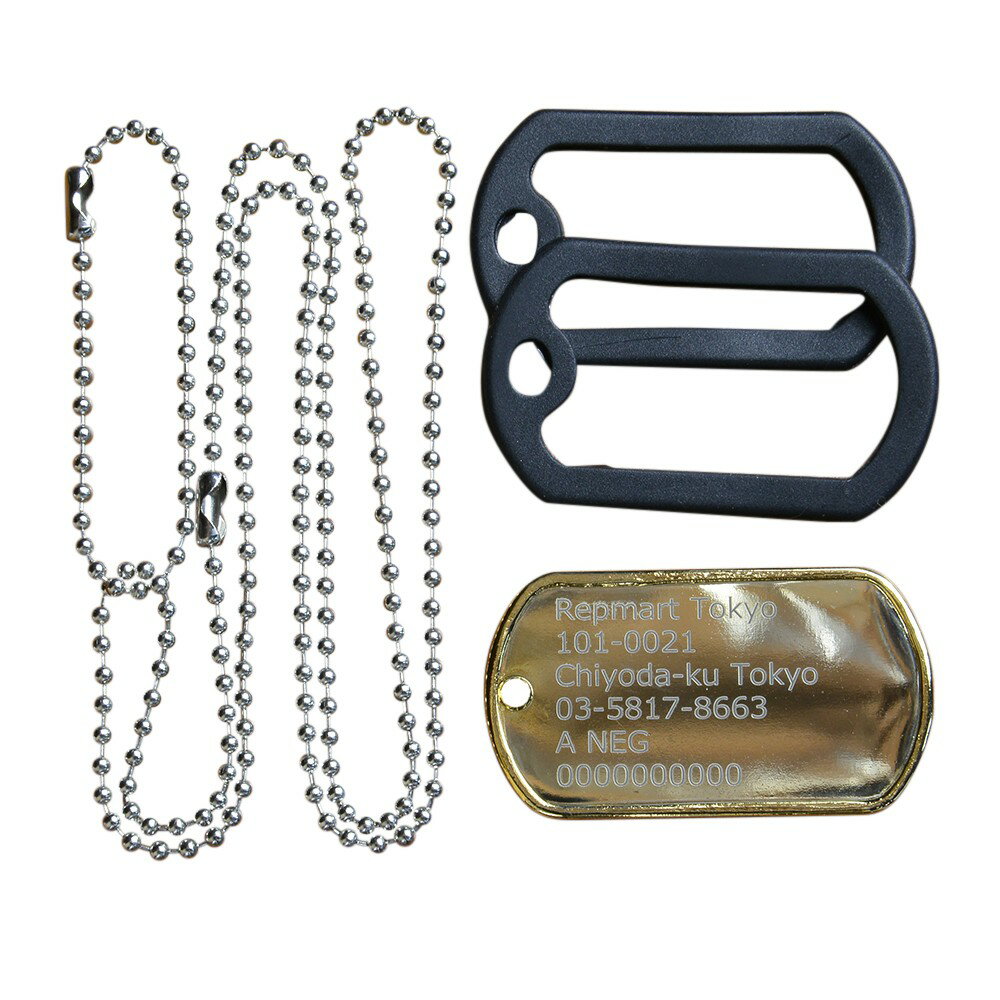 ゴールド ドッグタグ フルセット レーザー刻印付 加工日数2〜3営業日 ドックタグ 認識票 プレート DOG TAG つやあり 艶あり メンズ アクセサリー ステンレス 刻印つき レーザー刻印つき