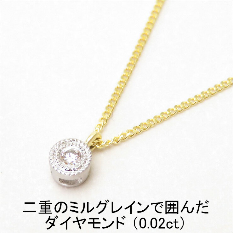 繊細なカッティングに輝く一粒ダイヤ ダイヤモンドの周りを二重のミルグレインで囲んだクラシカルなネックレス。