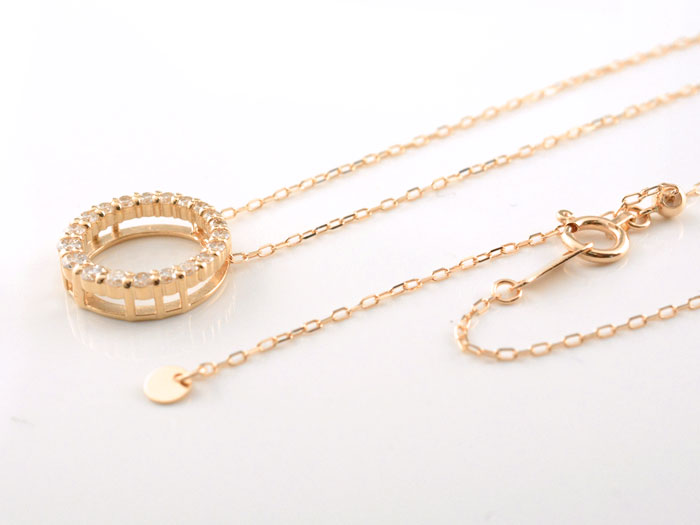 サークル型ダイヤモンドネックレス 胸元に存在感のあるダイヤモンド゛の輝き キュートで可愛らしいサークルにダイヤモンドをセッティングしたネックレスは 途切れることのない永遠を意味するアミュレットとして 大変人気の高いモチーフです。