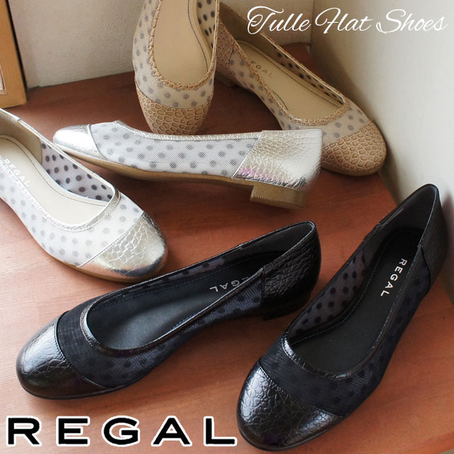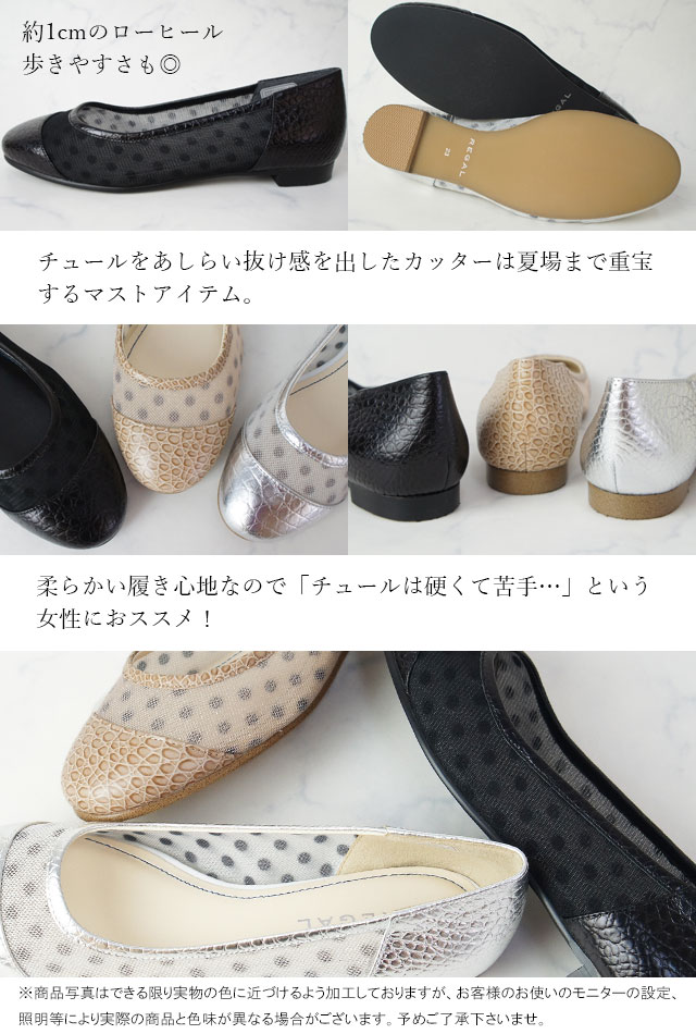 【送料無料】REGAL リーガル フラットシューズ 本革 レザー レディース F20L バレエシューズ 黒 ブラック シルバー オーク シースルー 水玉 ドット チュール evid |4
