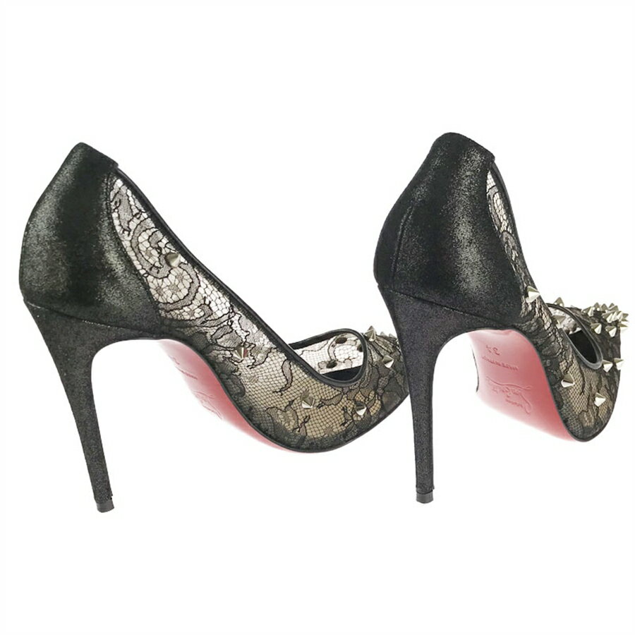 クリスチャンルブタン Christian Louboutin スパイクスタッズ シースルー レース ピンヒール ハイヒール 34 日本サイズ 22cm ブラック レディース パンプス rkd【中古】