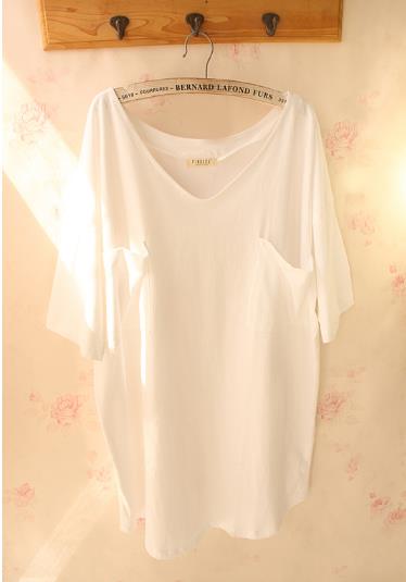 日系TシャツVネックセクシー風レディース 半袖パジャマワンピースルームウェア部屋着 寝巻き 女性用 長袖綿パジャマ プリンセスパジャ ワンピパジャマ 無地白コットン100%シンプル